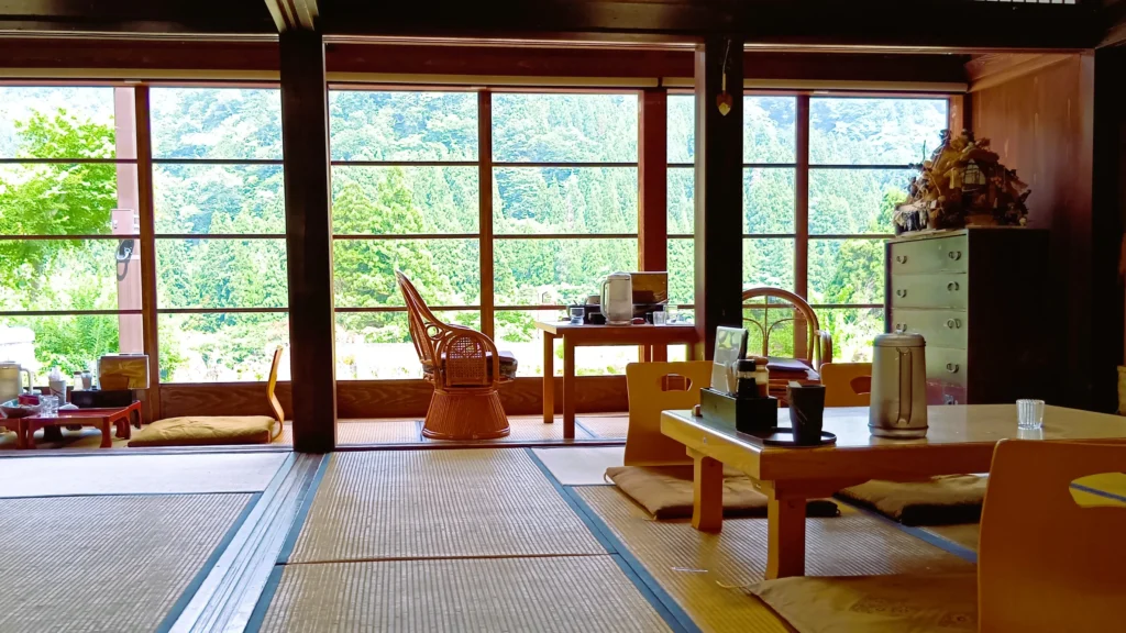 Having made the full circuit of seven structures, you’ll be ready for some sustenance. A 10-minute walk away is Shiramine’s famous Yukidaruma Cafe. Step into the foyer, which is mostly shop but also partly local gallery, and say hello. A member of the family who lives there will guide you into their spacious dining room.