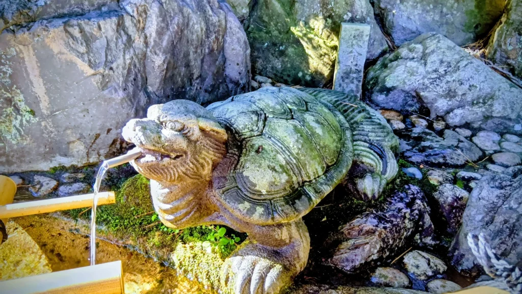 Why a tortoise? Because it represents longevity. A very appropriate bearer of Kehi Jingu’s “Long-Life Water.”